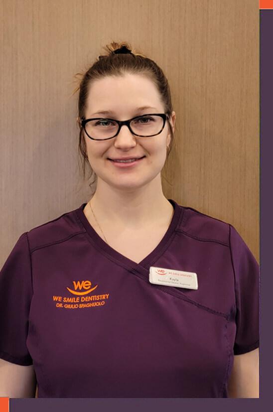 Hi, my name is Kayla, and I am a registered dental hygienist. I graduated from St Clair College in 2016 and joined our team in 2020. I spend my off hours hiking, fishing, swimming, and traveling. I love meeting new people, educating them on best oral health practices, and staying up to date on current information and new products. It would be my pleasure to look after you.