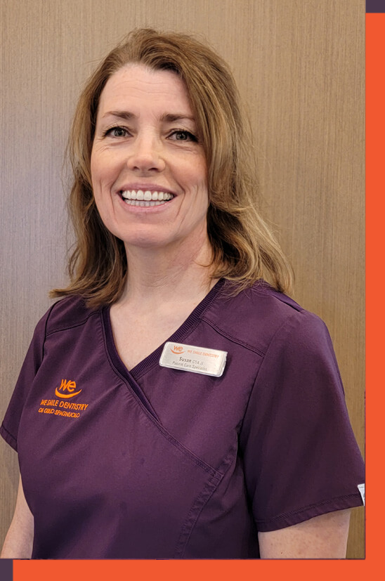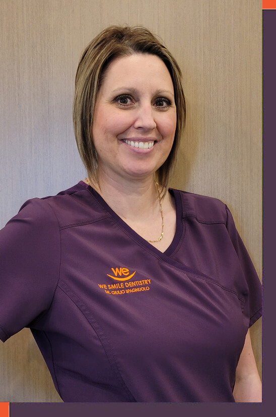 Hi, my name is Susan and I am a Patient Care Specialist. My family and I started as patients of Dr Spagnuolo’s in 1994. It was my experience as a patient that inspired me to change careers and become a dental assistant. I graduated from Medix in January 2008 and joined the We Smile Dentistry team in the fall of 2018. I enjoy meeting patients and their families. In my spare time I enjoy cycling, baseball and camping with my husband and family.
